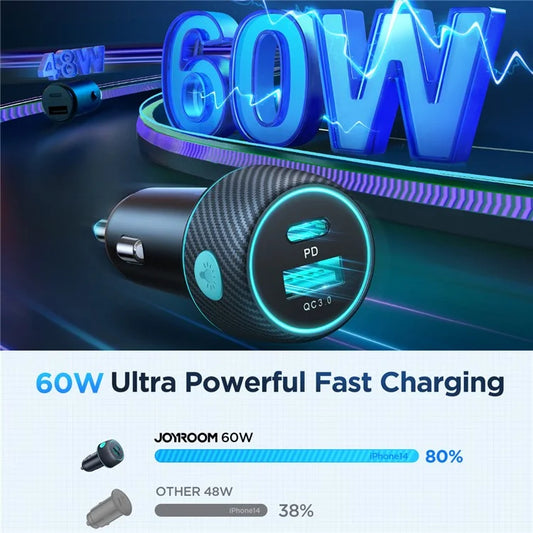 JOYROOM JR-CCN04 60W Fast Charging Mini Metal Car Charger Dual-Port USB-A & Type-C