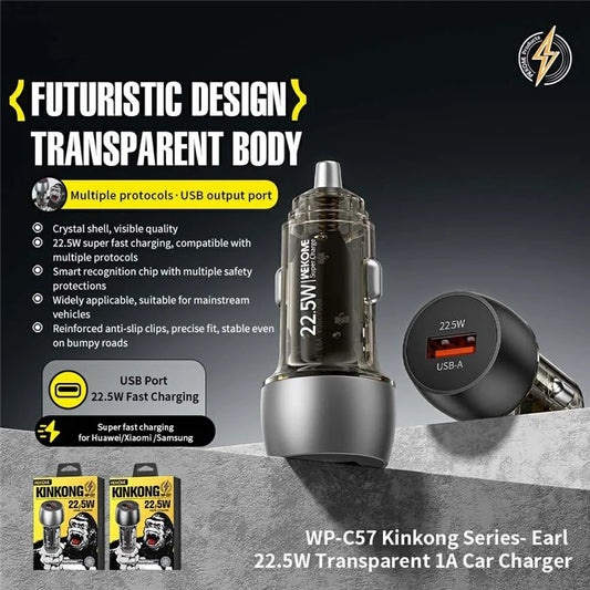 WEKOME WP-C57 22.5W USB-A Car Charger Fast Charging Aluminum Alloy Adapter
