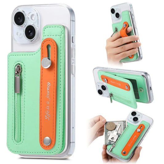 DENIOR V17 Zipper Card Case – MagSafe-Compatible Leather Phone Card Holder & Stand