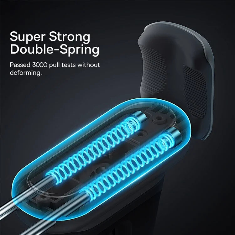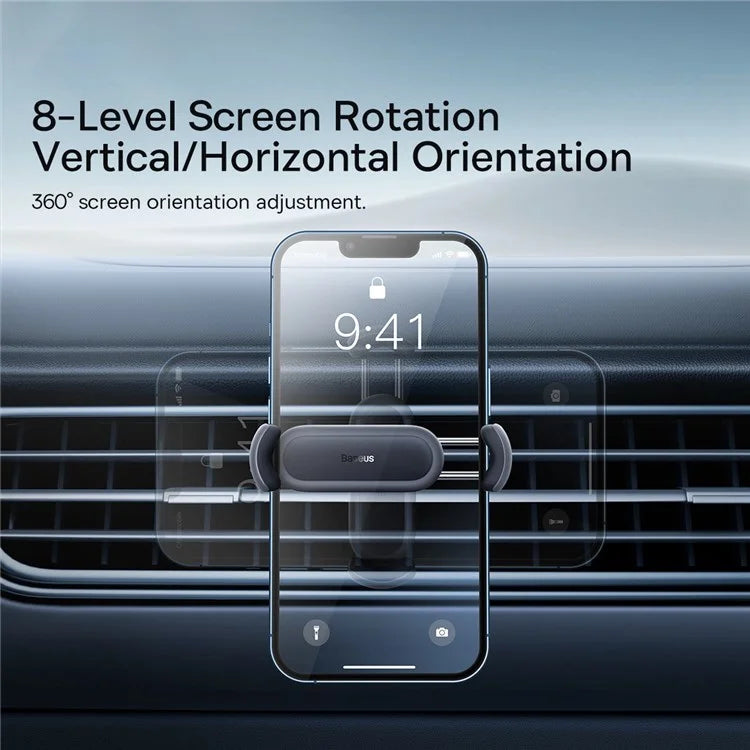 The BASEUS Steel Cannon 2 Car Phone Holder features a double-headed clip for a secure air vent mount, providing a stable grip even on rough roads. With soft silicone padding, a durable spring mechanism, and 360° rotation, it ensures a secure, scratch-free, and versatile setup for seamless navigation or hands-free calls.