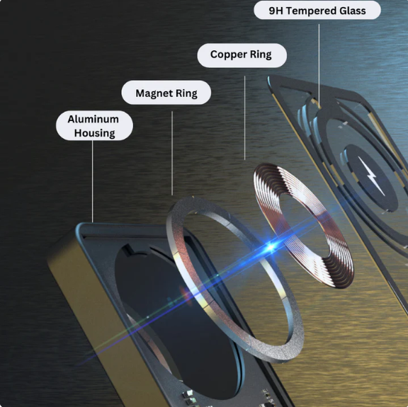 - Magnetic Wireless Charging: Provides seamless charging for devices with 5W, 7.5W, 10W, and 15W wireless output options.