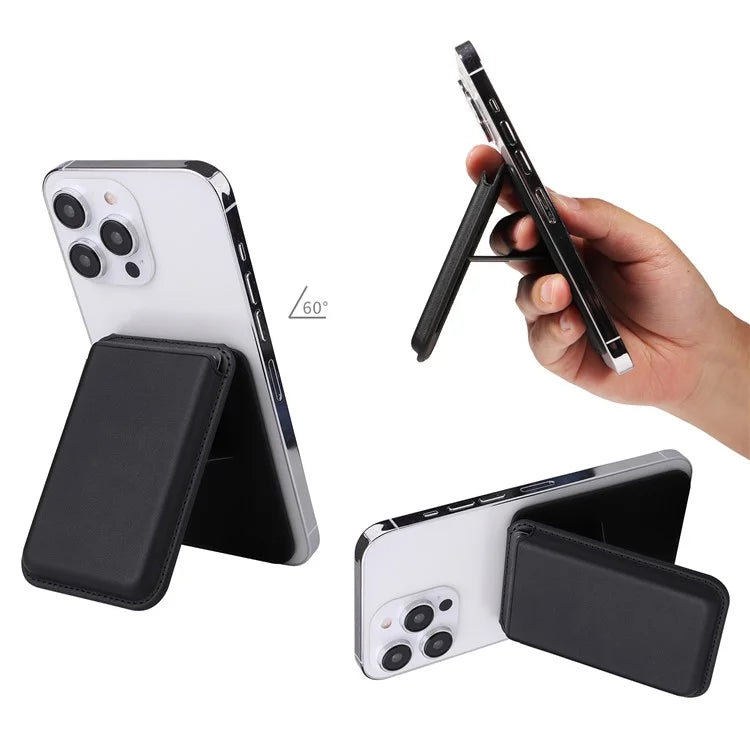 The TASX G057 MagSafe Card Holder is made from high-quality, wear-resistant PU leather, providing comfort and durability. It offers easy card storage with a secure locking mechanism to keep your essential cards safe. Additionally, the built-in kickstand allows for hands-free viewing at a 60° angle, perfect for video calls, watching videos, or reading.