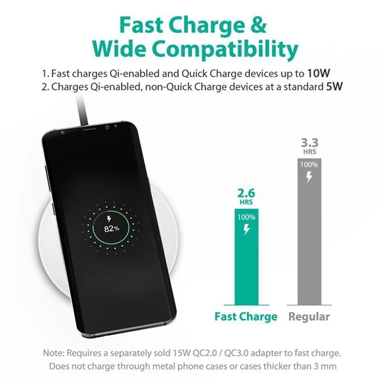 - Qi Standard, 10W Charging Power: Delivers more than 75% conversion efficiency, providing fast and reliable wireless charging.