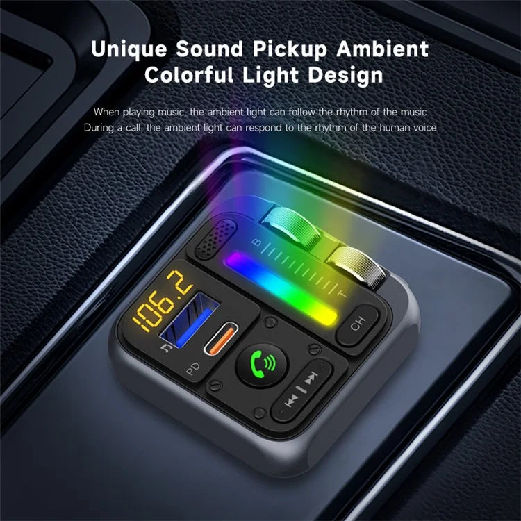 The TASX MT04 Car Bluetooth Adapter FM Transmitter combines superior audio performance, hands-free communication, and versatile charging capabilities. Its innovative features, including customizable sound effects, rhythmic ambient lighting, and advanced noise reduction, make it an essential companion for your journeys.
