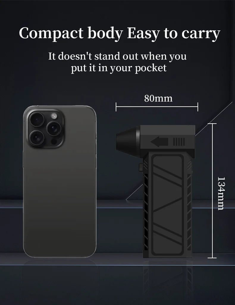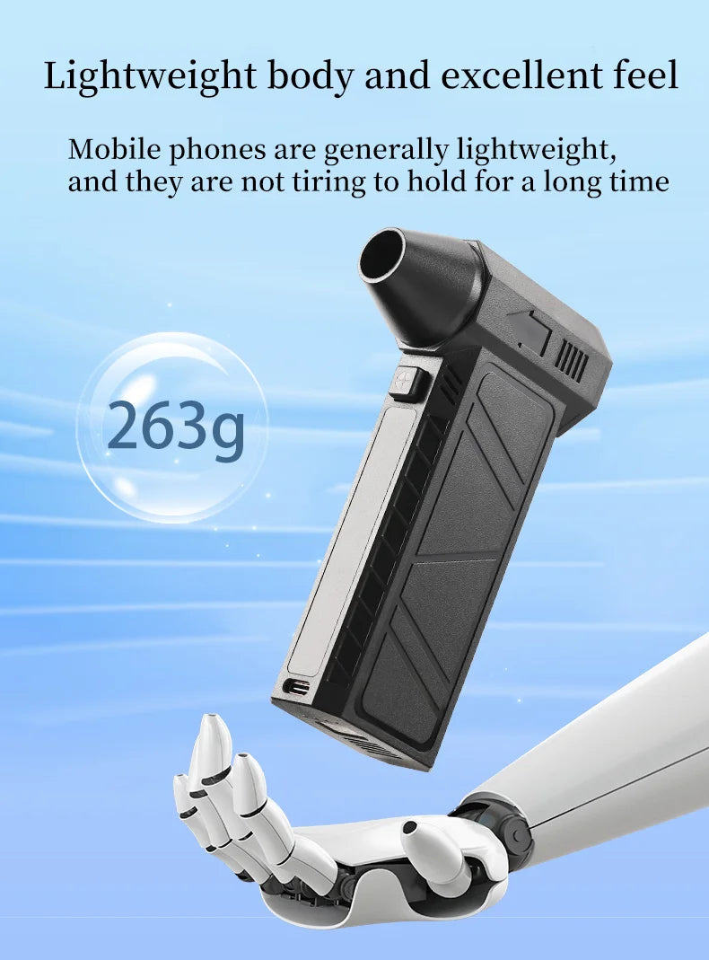 Stay cool and refreshed anywhere with the TASX S7 Handheld Mini Turbo Fan. Equipped with a powerful brushless motor and versatile features, it’s perfect for personal use and practical tasks like cleaning.