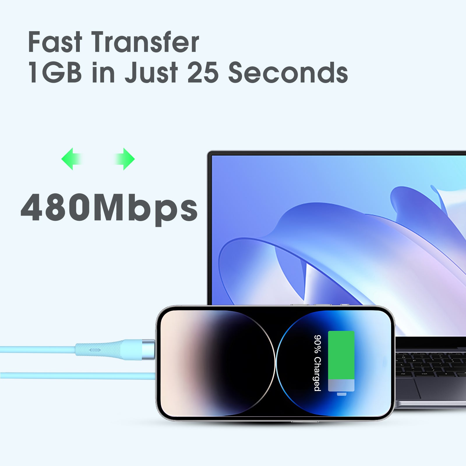 USB-C to USB-C 60W Fast Charging & Sync Cable combines high-speed performance with a soft, flexible design that’s built for everyday convenience. Made from premium silicone and featuring a reinforced long-tail connector, this cable ensures smooth charging, reliable data transfer, and maximum durability in a compact 1.2-meter length.