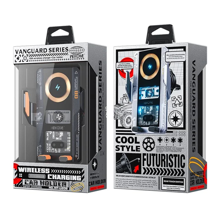 Experience a blend of cutting-edge technology and cyberpunk style with the WEKOME WP-U208 car wireless charging holder. Designed for maximum convenience and an eye-catching look, this device delivers fast wireless charging and secure phone placement for seamless driving.