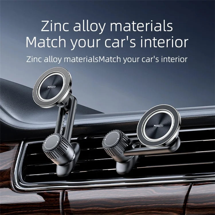 The YESIDO C168 MagSafe Car Phone Holder is designed to securely attach to your car's air outlet with a 360° rotating rod that can be adjusted both up and down for the perfect viewing angle. The universal ball joint allows for smooth, arbitrary angle adjustments while ensuring that the air outlet remains unobstructed. Featuring an adjustable nut-type telescopic clip, this holder fits all car models and ensures a stable hold without slipping. The strong magnets, embedded in a zinc alloy magnetic suction part with a CD pattern, guarantee a strong, stable grip for your phone. The holder is compatible with iPhone 12 and above and includes a magnet sheet for all phones.